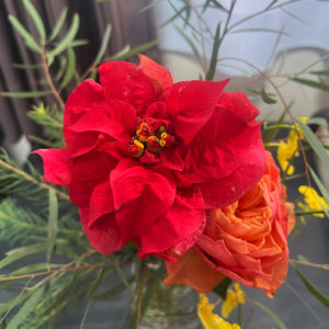 ちょっと遅れましたがメリークリスマス。鉢植えのポインセチアは難易度が高いので切り花を購入しました。すでに1週間以上経っているのですがまだまだ元気です。 年越すかしら?? それはそれでめでたいですかね。