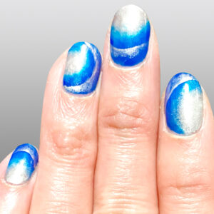 2021年7月青と銀で波紋を作りました。彩度の高い青と銀で作ったのでだいぶギラギラした仕上がりになりました。この青と銀は塗りやすいジェルです。