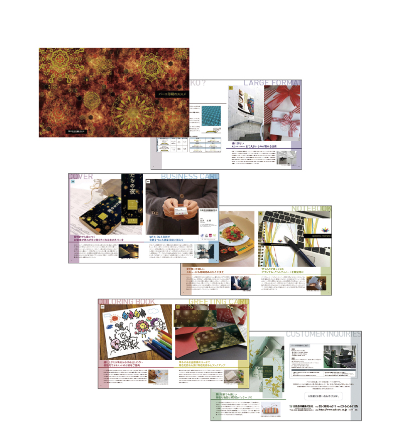 特殊印刷紹介カタログ 4色+特色金+バーコ印刷 210×210mm 12ページ