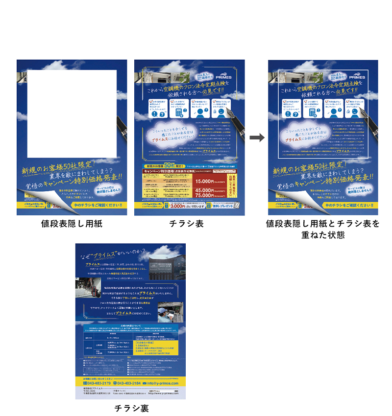 キャンペーンDM 4色 A4表裏+値段隠し用紙