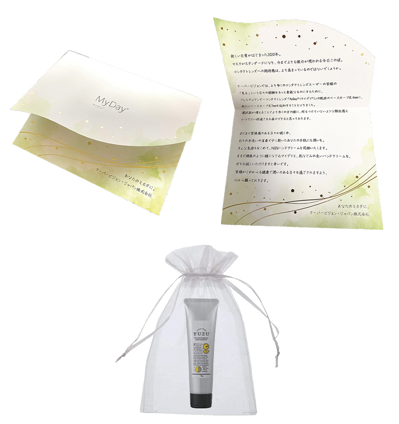 ノベルティ ハンドクリーム 製品調達・ラッピング含む 挨拶状 4色+金箔押し+型抜き